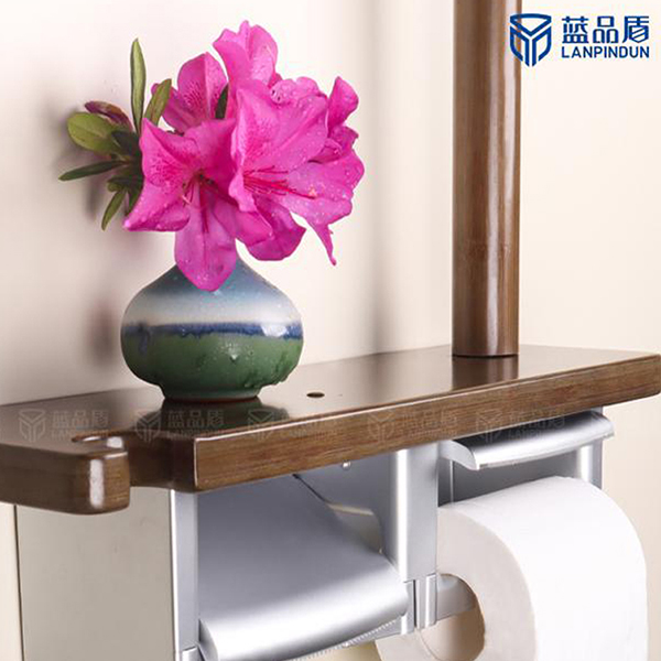 家居化的纸巾盒设计装置在马桶旁边仅可以当拉杆辅助老年人轻松上下蹲,而且可以存放卷纸和手机之类的随身物品哦!实木的材质环保又耐用。
