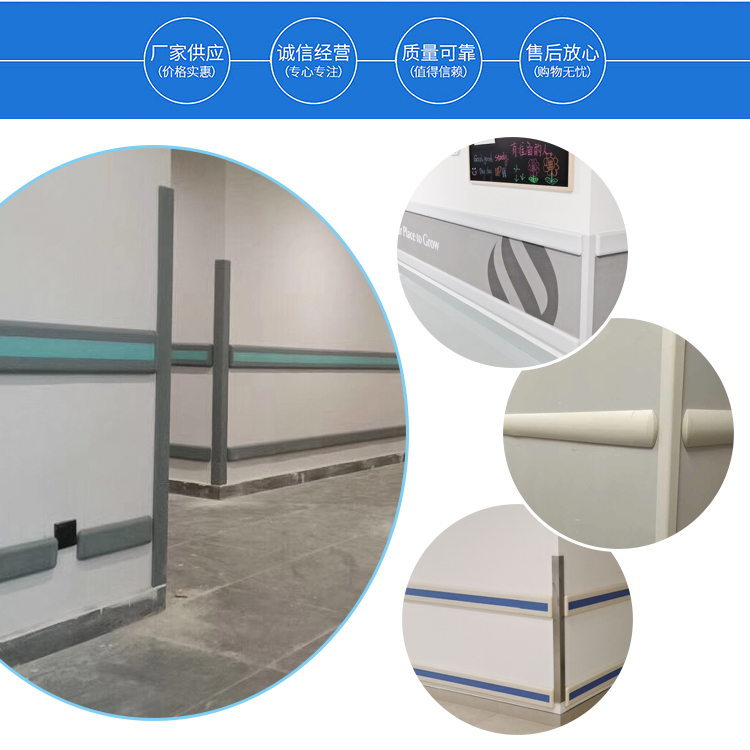 医院在装修的时候有许多讲究,不同区域有不同的建材安装,医院走廊、过道里病人患者比较多,容易发生磕碰,PVC护墙板主要是起到缓冲作用,可缓冲各种推车、物体撞击,可防止墙体损伤和人体负伤。