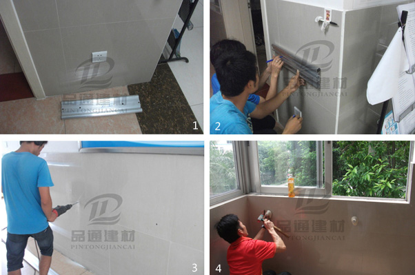1.安装走廊扶手之前先在墙体上面拉一条直线,然后用记号笔在固定孔里画好打孔标记,然后打孔固定铝材。