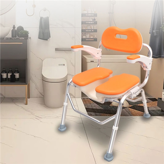 蓝品盾LPD-C-108款洗澡椅拥有舒适的靠背和宽阔的座椅深度,高度六档可调节,扶手也能随意调整高度。整体采用鲜亮的橙色,美观漂亮。